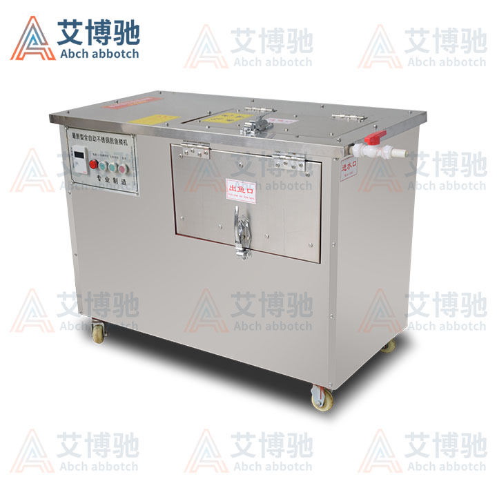 艾博馳ABCH-50去魚鱗機(jī)廣泛應(yīng)用于魚類銷售市場(chǎng)、飯店、魚類加工廠等等,本產(chǎn)品不會(huì)對(duì)魚頭、魚尾、魚鰭造成損傷。該機(jī)器利用旋轉(zhuǎn)效應(yīng),使魚在運(yùn)動(dòng)中去鱗,去鱗干凈。