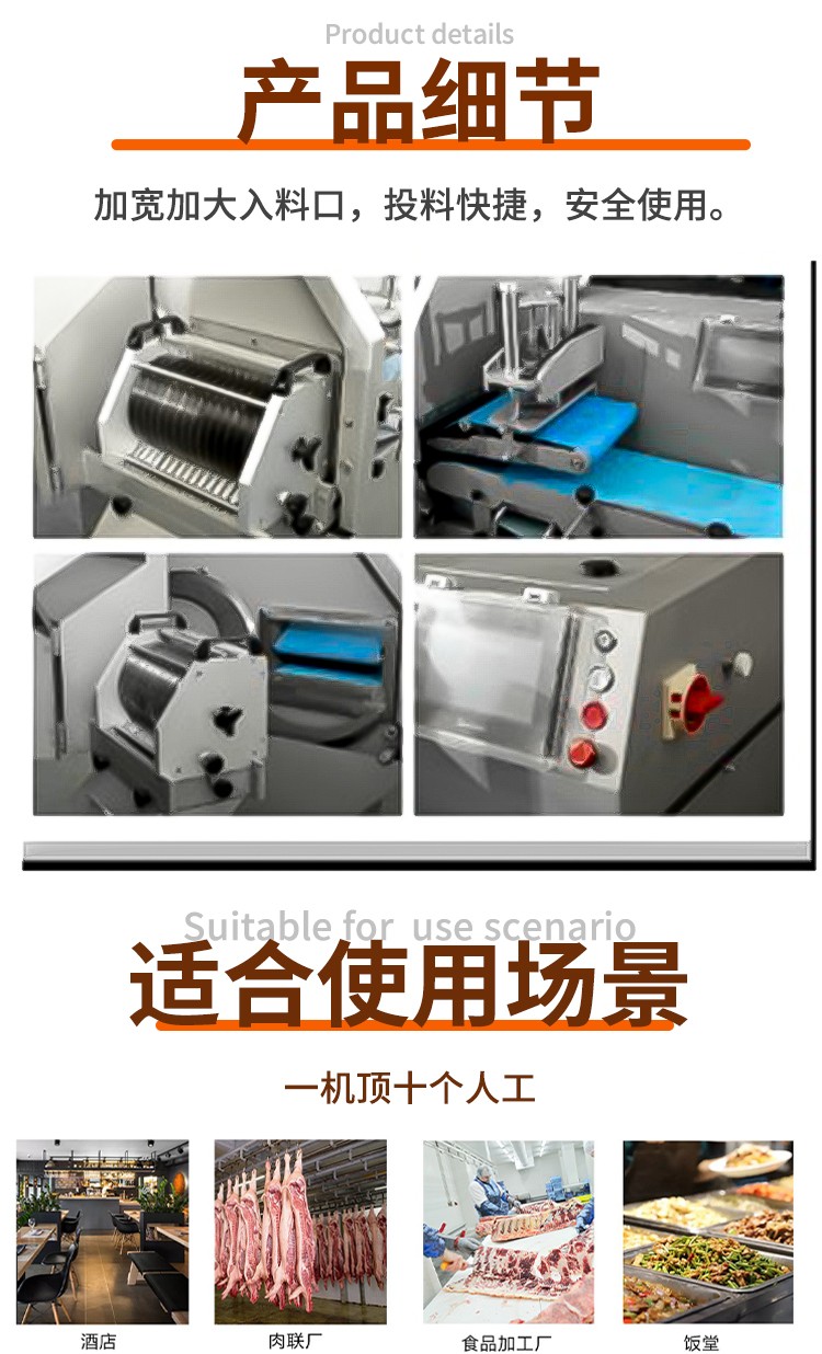 二維切丁機由雙刀切片,圓片刀組切斷的組合成切丁。主要用于微凍肉,熟肉,禽類,魚類,組合肉類產(chǎn)品的丁,條,片的切割。解決了廣大客戶對熟肉,組合產(chǎn)品的切割破碎的難題,切割質(zhì)量好,可一機多用,生產(chǎn)效率高。