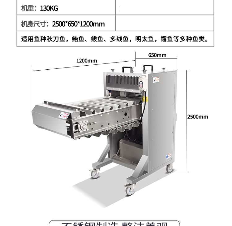 艾博馳ABCH-QT68去魚頭機(jī)將魚放到傳送托盤,按設(shè)定好的尺寸直線切割魚頭,切割尺寸便于調(diào)整,切割效率高,減少魚肉的損失,操作簡(jiǎn)單,適用于秋刀魚、鲅魚、多線魚、明太魚、鱈魚等多種魚類。