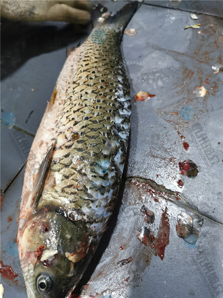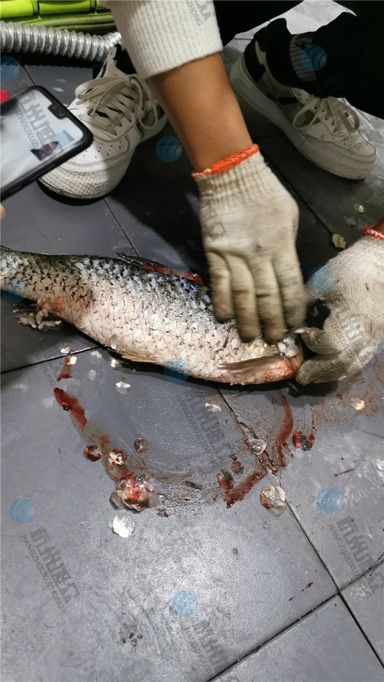 杭州賽旭開背去鱗殺魚機現(xiàn)場試三斤草魚效果