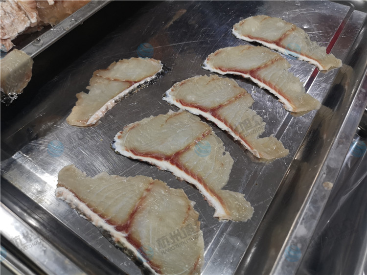 而且設(shè)備的適用范圍是很廣的:鯉魚、鰱魚、三文魚、桂魚、青魚、草魚、黑魚、鱸魚等,處理好前期工作后,是可以直接放入設(shè)備進(jìn)行切片的,切的魚片,厚薄均勻,工作效率同比手工是非常快的,解決了傳統(tǒng)手工切魚片費(fèi)時(shí)費(fèi)力效率低的問題。