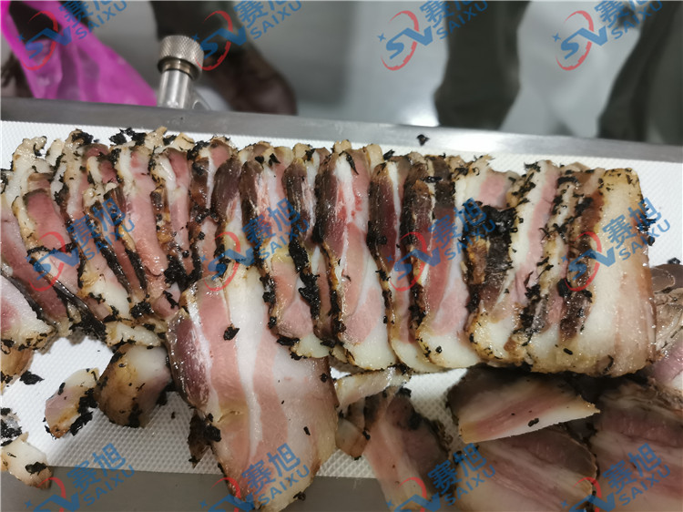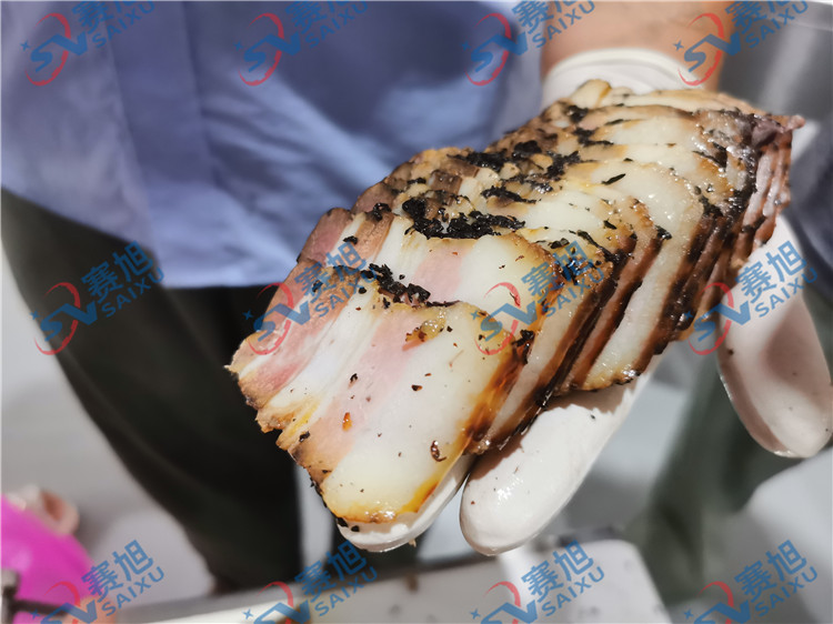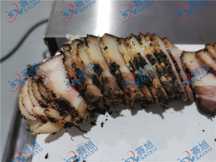 一客戶帶了幾塊梅干菜扣肉來到本廠試機,這客戶他們的產(chǎn)量一天好機千斤,一直想買一臺合適的設備去代替人工,因為人工的成本太高了,所以一直在選合適的設備,于是再網(wǎng)上看到我們公司的信息,聯(lián)系到了我們,然后就安排來廠免費試機,設備呢也沒讓客戶失望,客戶當場定購設備,直接提貨!來看看效果有多好: