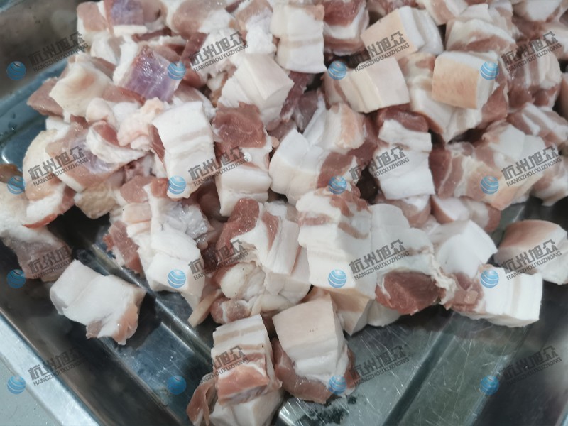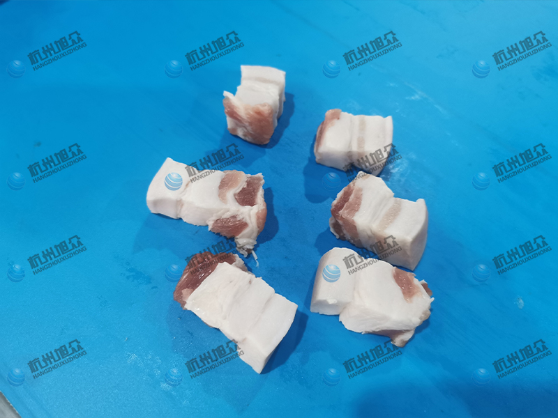 這款機(jī)器外形尺寸是1700*780*1310mm,傳送帶寬度(入料)約為500mm , 入料高度約為100mm,加工尺寸6-50mm(可定制),生產(chǎn)能力每小時(shí)可約切割1500-2000Kg,產(chǎn)量巨大,適合很多大型肉制品加工廠使用,可以節(jié)約大量人力去切肉,省去很多成本,還不會(huì)有人員受傷情況的發(fā)生。非常安全高效,下面是我們?cè)嚈C(jī)的成果展示: