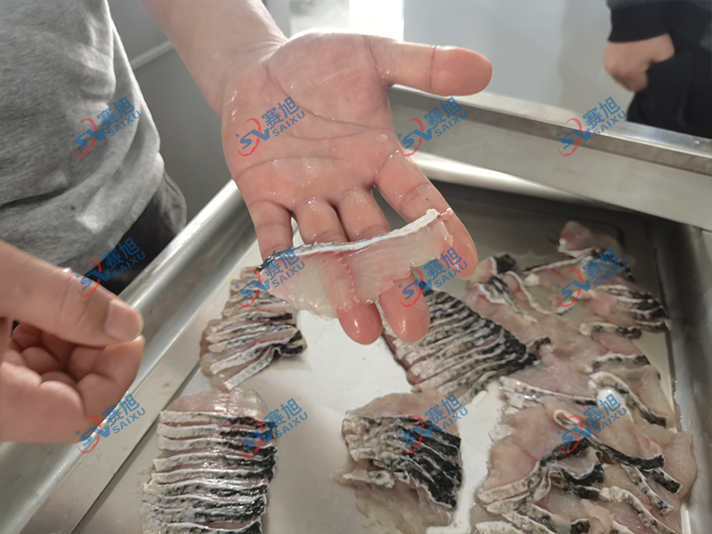 【殺魚機(jī)魚片機(jī)】切片平整光滑,充分保護(hù)魚片的鮮嫩,保證魚片的嫩滑口感
