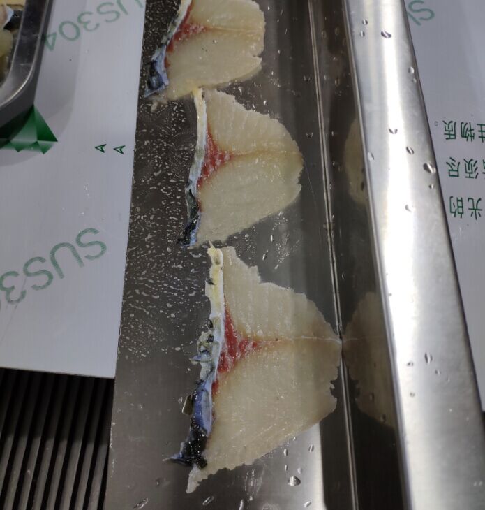 旭眾全自動(dòng)斜切魚(yú)片機(jī)切草魚(yú)2.5mm效果