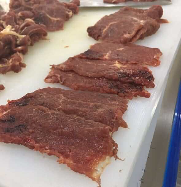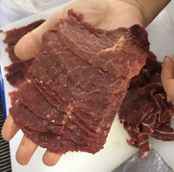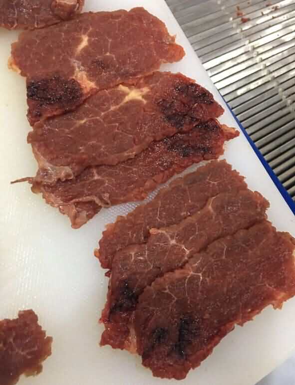 全自動(dòng)切魚片機(jī)切鮮牛肉片效果
