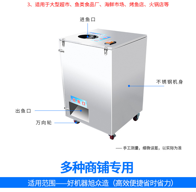 長話短說:天越來越冷,這寒冷的冬天也開始對你動手動腳了,但是天再冷,你還是在堅(jiān)持著手工殺魚,即使手凍的像包子一樣,凍的產(chǎn)不忍賭,也還還在堅(jiān)持,沒辦法,為了生活,我很佩服你這份執(zhí)著,但是我勸你放下這份執(zhí)著,對自己身體負(fù)責(zé),對家人或是員工,趕緊訂購一臺殺魚機(jī)吧!一臺殺魚機(jī),不僅可以殺魚,還可以去鱗開背、開肚、去內(nèi)臟,你確定不買一臺,你現(xiàn)在出去看看,現(xiàn)在那個超市、飯店、酒店、食堂、還在請員工手動殺魚,沒有了,人家都學(xué)聰明了,你想想一臺殺魚機(jī),即可搞定你所有復(fù)雜的手工程序,只需一人操作,即省了請員工,也省去了很大的一部分成本,這一舉兩得的好事,何樂不為呢!趕緊行動!服務(wù)熱線:400-885-2117,對了溫馨提示:如果你怕我們的機(jī)器達(dá)不到你想要得結(jié)果,你可以親自準(zhǔn)備物料上門試機(jī)哦,地址:杭州市濱江區(qū)楚天路229號(杭州旭眾機(jī)械設(shè)備有限公司)