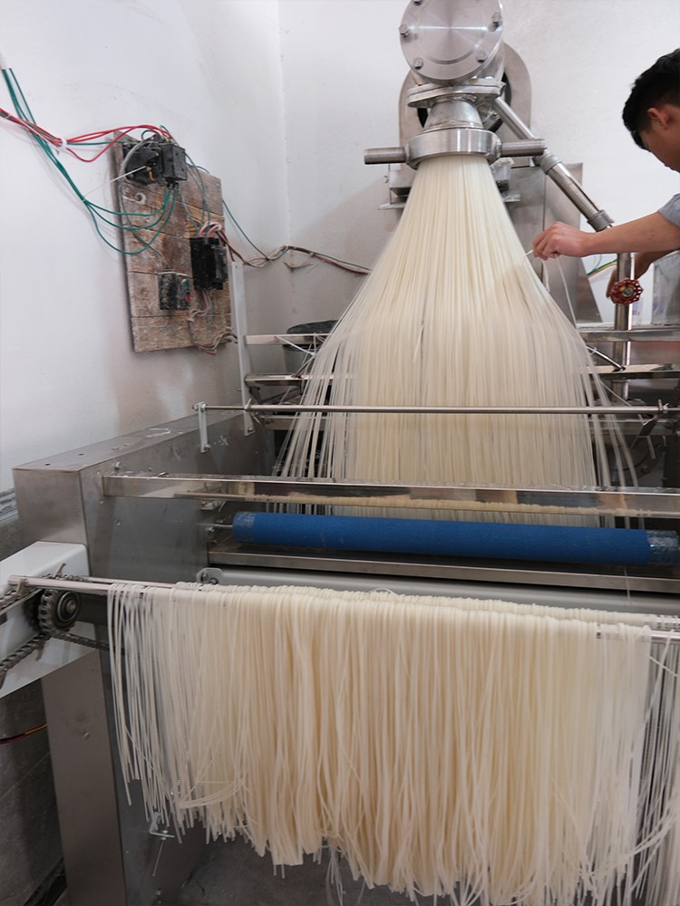 2、口感優(yōu)勢(shì):柔軟、爽滑、不斷、有勁道、產(chǎn)量高、穩(wěn)定性好、150-300KG每小時(shí)